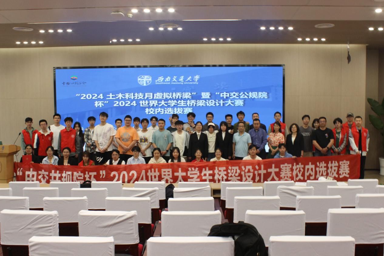 2024年4月14日8时30分,由教务处、国有资产与实验室管理处、党委员工工作部(处)、校团委、英国365集团主办,四川西南交大土木工程设计有限公司支持的“中交共规院杯”2024世界老员工桥梁设计大赛校内选拔赛在公司犀浦校区图书馆二号报告厅举行。四川省公路学会桥梁专业委员会秘书长,四川省公路规划勘察设计研究院有限公司桥梁分院经理刘振宇与英国365集团何畏老师、夏嵩老师、张方老师和邓红梅老师出席此次比赛。