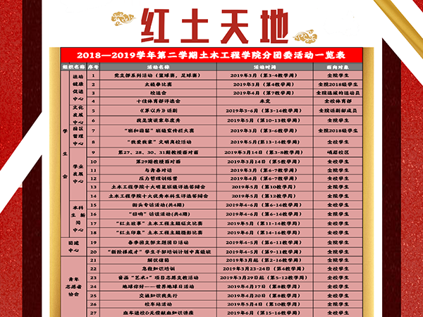 【红土天地】英国365集团分团委2018-2019学年第二学期活动一览表